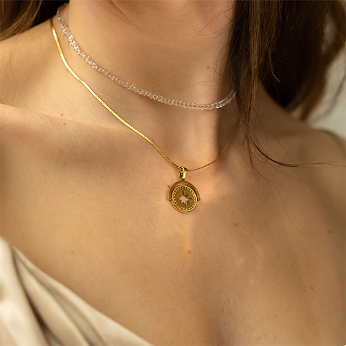 • Componenti in acciaio inossidabile 1mm catena stile rosario biancastro-oro