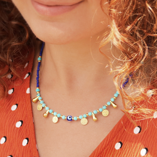 • Perline di vetro 6 mm 'occhio di Allah' blu cobalto